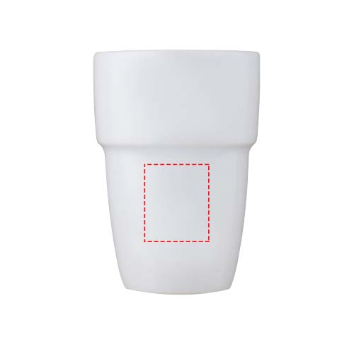Zestaw upominkowy składający się z czterech ceramicznych kubków, które można układać jeden na drugim, tak aby zajmowały jak najmniej miejsca i pozwalały zachować porządek w biurze lub w domu. Pojemność 280 ml. Wszystkie metody nadruku nadają się do mycia w zmywarce. Zapakowany w kartonowe pudełko upominkowe wykonane z materiałów pochodzących z recyklingu.