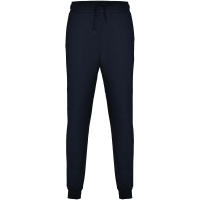 Sportowe spodnie z szerokim regulowanym pasem, sznurkiem do ściągania, dopasowanymi ściągaczami na nogawkach, wzmocnionymi szwami, prążkowanymi kieszeniami bocznymi i narożną tylną kieszenią z przeszyciem. Usuwalna etykieta.