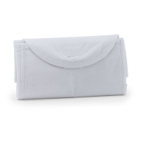 Składana torba na zakupy wykonana z materiału non woven z zapięciem na rzep i praktyczną kieszenią zewnętrzną.