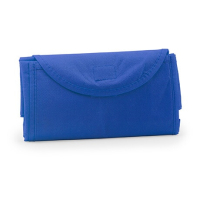 Składana torba na zakupy wykonana z materiału non woven z zapięciem na rzep i praktyczną kieszenią zewnętrzną.