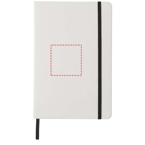 Notatnik A5 z zamknięciem na kolorową gumkę i tasiemką. 80 kartek w linie (gramatura 60 g/m²). Na okładce można wykonać zdobienie drukiem cyfrowym.