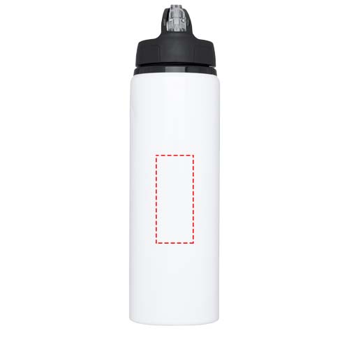 Butelka aluminiowa z jednowarstwową ścianką i zakrętką z wylewką typu flip-top. Zakrętka posiada uchwyt ułatwiający przenoszenie. Nie zawiera BPA. Pojemność 800 ml.