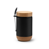 Wielofunkcyjny termos wykonany ze stali nierdzewnej 304, idealny do przechowywania żywności. Bambusowa pokrywka i korkowe dno. Łyżka w zestawie. Pojemność: 400 ml. Zapakowany w pudełku zaprojektowanym z myślą o środowisku.