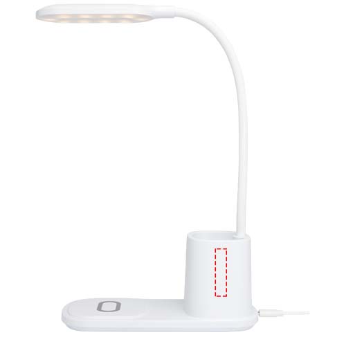 Lampa biurkowa z wbudowaną ładowarką bezprzewodową i uchwytem na ołówek. Lampa ma 3 ustawienia oświetlenia (ciepłe/zimne/średnie) i ma regulowaną wysokość. Ładowarka bezprzewodowa ma moc 10 W i jest kompatybilna z wszystkimi urządzeniami Qi (iPhone 8 lub nowszy oraz urządzenia z systemem Android, które wspierają bezprzewodowe ładowanie).