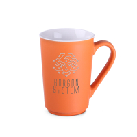 Smukły kubek reklamowy z satynową, kolorową powierzchnią na zewnątrz oraz białym, błyszczącym wnętrzem. Posiada subtelne zaokrąglone ucho. Jego proste ścianku idealnie wyeksponują nawet bardzo obszerne nadruki.