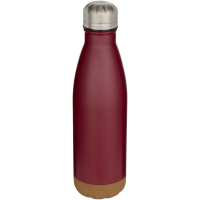 Butelka na wodę ze stali nierdzewnej, izolowana próżniowo, z detalami z korka na spodzie. Podwójna ścianka izolacyjna utrzymuje napoje ciepłe lub zimne przez kilka godzin. Zapakowana w pudełko upominkowe wykonane z kartonu z recyklingu. Pojemność: 500 ml.