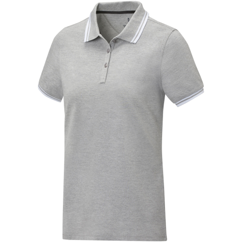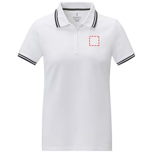 Damska koszulka polo z krótkim rękawem Amarago to przykład ponadczasowego stylu i współczesnej elegancji. Wykonane z wysokiej jakości bawełnianej dzianiny piqué o gramaturze 200 g/m², oferuje wyjątkowy komfort i trwałość. Unikalne wykończenie kołnierzyka i mankietów oraz kontrastujące kolory tworzą stylową i nowoczesną estetykę, dzięki czemu jest to doskonały wybór na każdą okazję. Koszulka polo ma dopasowany krój zapewniający kobiecy wygląd.