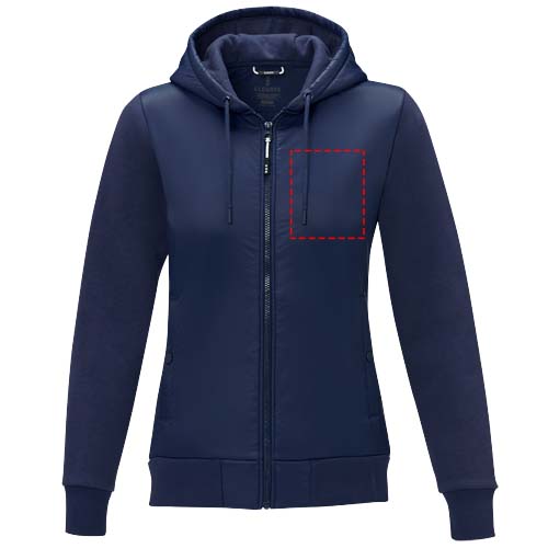 Damska kurtka hybrydowa Darnell to idealne połączenie stylu i funkcjonalności. Częściowo wykonana z tkaniny nylonowej 380T o gramaturze 38 g/m², zapewniającej trwałość i lekkość. Kontrastowy materiał to dzianina z bawełny i poliestru (345 g/m²), zapewniająca wygodę i swobodę ruchów. Wnętrze kurtki jest szczotkowane, zapewniając dodatkowe ciepło i miękkość w dotyku. Kurtka jest wyposażona w wewnętrzną kieszeń, która zapewnia wygodne przechowywanie niezbędnych rzeczy. Elastyczne ściągacze w mankietach i u dołu zapewniają wygodne i bezpieczne dopasowanie, dodając odrobinę wyrafinowania do ogólnego projektu. Hybrydowa kurtka Darnell to idealny wybór do noszenia na co dzień i na swobodne okazje. Kurtka ma dopasowany krój, który nadaje jej kobiecy wygląd.