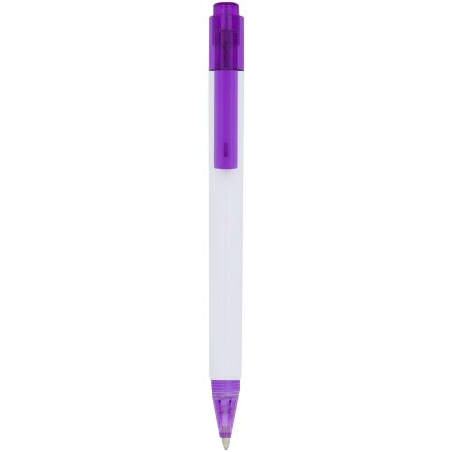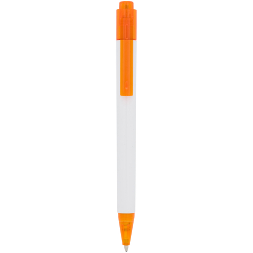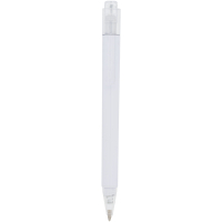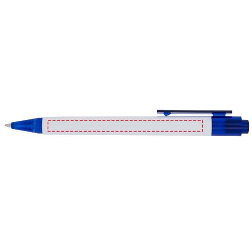 Długopis Calypso ma smukły, biały korpus i przejrzysty klips i końcówkę.