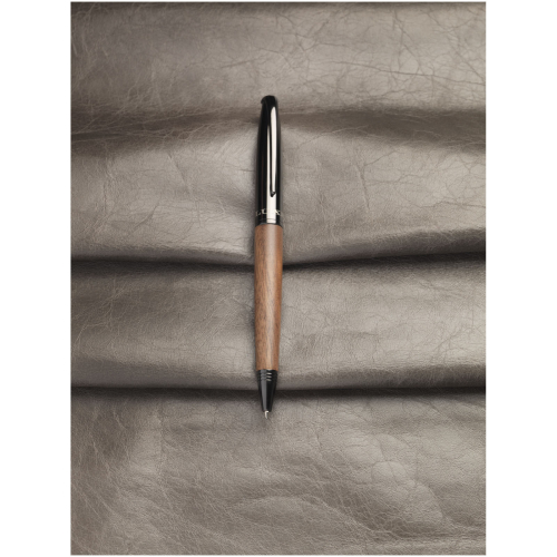 Długopis typu twist z drewnopodobnym korpusem, wykonany z chromowanego mosiądzu, zapakowany w pudełko upominkowe Luxe. Wymiary długopisu: 14,1 cm, 1,2 cm, waga: 26 gr, żywotność: 1500 m.