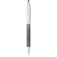 Klasyczny długopis z połyskującą górną częścią korpusu oraz wykończeniem z włókna węglowego w dolnej części korpusu. Zapakowany w cylindryczne etui upominkowe.