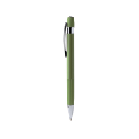Długopis wykonany z aluminium pochodzącego z recyklingu o matowym, gumowym wykończeniu. Detale o chromowanym wykończeniu. Wkład Jumbo z tuszem w kolorze niebieskim.