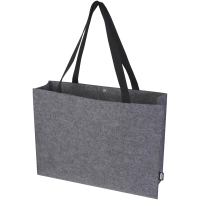Duża torba na zakupy z dnem wykonana z miękkiego i wytrzymałego wysokiej jakości filcu z materiałów z recyklingu z certyfikatem GRS. Torba ma dużą komorę główną o dużej pojemności (do 20 litrów), wzmocnione, tkane bawełniane uchwyty (30 x 2,5 cm) zapewniające optymalny komfort noszenia oraz guzik zamykający u góry.