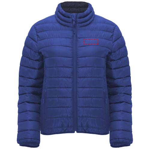 Damska kurtka pikowana z wypełnieniem przypominającym w dotyku pierze. Odwrócone zamki błyskawiczne z dopasowanym ochraniaczem podbródka i ściągaczem. Dwie przednie kieszenie z zamkami błyskawicznymi. Dopasowana elastyczna lamówka w kołnierzu, mankietach i u dołu. Kontrastowa podszewka wewnętrzna. W zestawie torba transportowa. Lekka i składana odzież. Dopasowany krój. Usuwalna metka. Wodoodporność. Wiatroszczelna.