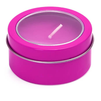Świeca zapachowa w kolorach, dopasowanych do okrągłego metalowego świecznika.