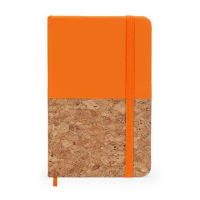 Notatnik A6 z gładką, sztywną okładką wykonaną z korka i skóry ekologicznej. Format mieści się idealnie w dłoni, nie zajmuje dużo miejsca w torebce. Posiada w 80 czystych stron, co pozwoli na zapisanie wielu informacji, notatek. Dodatkowo znajduje sie w nim kolorowa tasiemka-zakładka. Gumka przymocowana do notatnika sprawi, że nie otworzy się on samoczynnie np. w torebce. Na okładce notatnika możliwość wykonania znakowania.