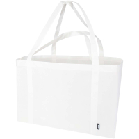 Wykonana z trwałej i odpornej na rozdarcia włókniny RPET z recyklingu z certyfikatem GRS torba na zakupy Jumbo oferuje wyjątkowo dużą pojemność do 65 litrów, dzięki czemu sprawdzi się podczas różnych aktywności, takich jak zakupy spożywcze albo dzień na plaży lub w parku. Ma wzmocnione krótkie uchwyty (24 cm) oraz długie uchwyty (37 cm) zapewniające maksymalny komfort noszenia. Łatwa do złożenia i przechowywania, gdy nie jest używana. Wytrzymałość do 15 kg.