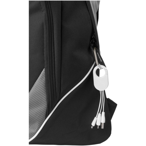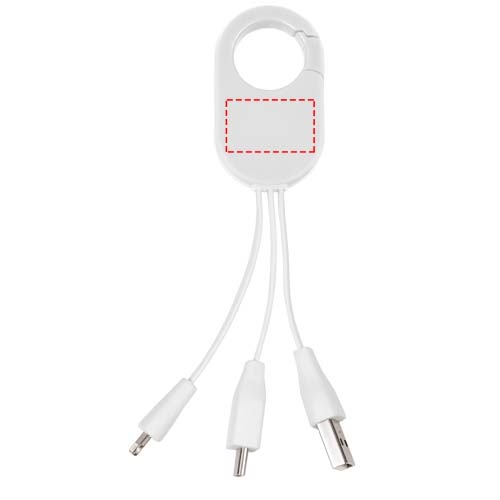 Kabel do ładowania Troop 3w1 ma końcówkę USB C oraz końcówkę 2w1 kompatybilną z urządzeniami Apple® iOS oraz Android. Karabińczyk pozwala na łatwe przyczepienie do torby.