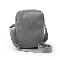 Saszetka wykonana ze sztruksowej tkaniny z zapięciem na zamek błyskawiczny i regulowanym paskiem.