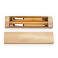 Zestaw piśmienniczy składający się z długopisu i ołówka z przyciskowym mechanizmem. Produkty wykonane z bambusa, wykończenie metalowe. Zestaw zapakowany w estetyczne kartonowe pudełko imitacja drewna. Możliwość znakowania. Wkład w kolorze niebieskim. Zestaw idealnie nadaje się jako upominek czy gadżet reklamowy.