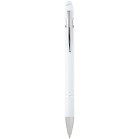 Długopis Kish ze srebrnym wykończeniem ma korpus wykonany z aluminium z recyklingu i rysik dotykowy wykonany z silikonu. Aluminium z recyklingu ogranicza ilość odpadów na wysypiskach śmieci i pomaga chronić zasoby naturalne w celu zmniejszenia emisji gazów cieplarnianych. Kolor tuszu: Czarny. Żywotność: 800 metrów. Rozmiar stalówki: 1,0 mm.