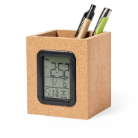 Korkowy pojemnik na przybory do pisania, zegar wielofunkcyjny