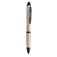 Długopis z mechanizmem obrotowym wykonany z włókna pszenicznego. Elementy czarne długopisa zrobione z polipropylenu. Dodatkowo posiada miękką, silikonową końcówkę do ekranów dotykowych. Wkład w kolorze niebieskim.