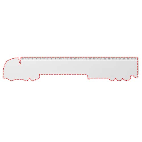 Linijka z litego tworzywa sztucznego pochodzącego z recyklingu w kształcie ciężarówki z oznaczeniami w calach lub centymetrach.