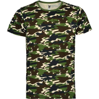T-shirt z krótkim rękawem w stylu moro. Zaokrąglony kołnierzyk. Czterowarstwowy ściągacz, wzmocnione kryte szwy na karku i ramionach. Szwy boczne.