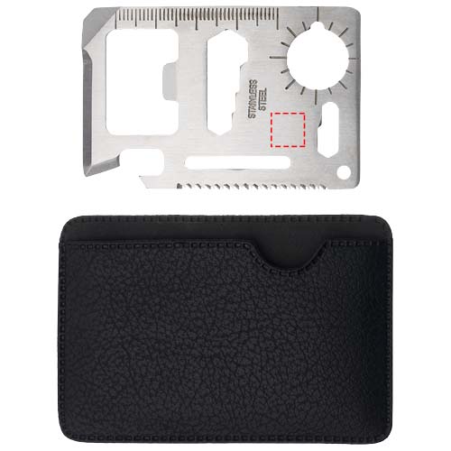 11-funkcyjne multinarzędzie w postaci karty kredytowej. Posiada etui z imitacji skóry.