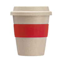 Kubek z pokrywką, z bambusa i włókna PP.
