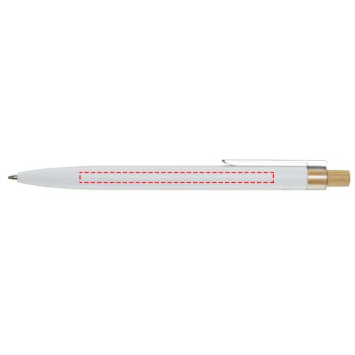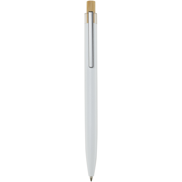 Nooshin długopis wykonany z aluminium pochodzącego z recyklingu, którego produkcja wymaga mniej energii niż w przypadku aluminium wyprodukowanego z surowców. Ogranicza również ilość odpadów na wysypiskach śmieci i pomaga chronić zasoby naturalne w celu zmniejszenia emisji gazów cieplarnianych. Przycisk jest wykonany z bambusa. Kolor tuszu: Niebieski. Żywotność: 800 metrów. Rozmiar stalówki: 1,00 mm.