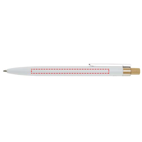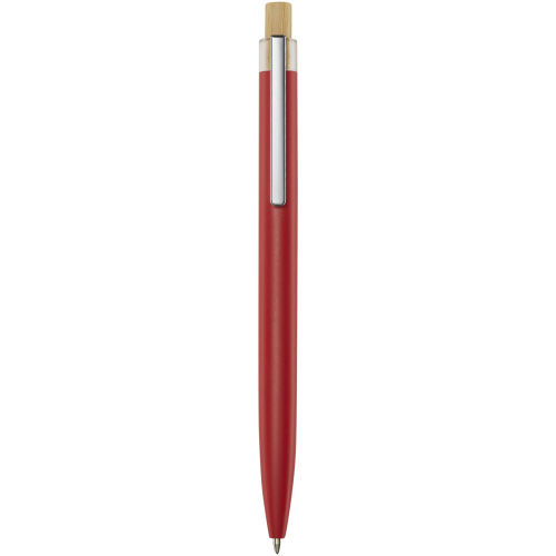 Nooshin długopis wykonany z aluminium pochodzącego z recyklingu, którego produkcja wymaga mniej energii niż w przypadku aluminium wyprodukowanego z surowców. Ogranicza również ilość odpadów na wysypiskach śmieci i pomaga chronić zasoby naturalne w celu zmniejszenia emisji gazów cieplarnianych. Przycisk jest wykonany z bambusa. Kolor tuszu: Czarny. Żywotność: 800 metrów. Rozmiar stalówki: 1,00 mm.