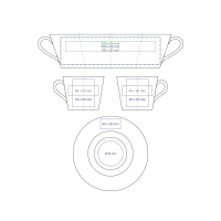 Subtelna filiżanka wykonana z wysokiej jakości porcelany. Jej proste ścianki doskonale wyeksponują naniesione zdobienie. Posiada prosty spodek, który nadaje się do wielokolorowych nadruków.