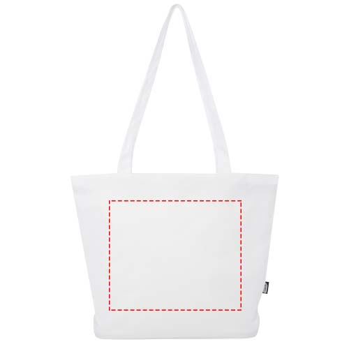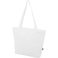 Panama zapinana na zamek błyskawiczny torba z wodoodpornego materiału RPET 600D z recyklingu z certyfikatem GRS to trwała, wielofunkcyjna torba na zakupy, która idealnie nadaje się na imprezę, plażę lub zakupy spożywcze. Posiada główną komorę zapinaną na zamek błyskawiczny oraz wewnętrzną kieszeń zapinaną na zamek błyskawiczny, która jest wystarczająco duża, aby pomieścić telefon i inne cenne rzeczy. Uchwyty mają długość 34 cm, dzięki czemu torbę można łatwo nosić na ramieniu. Wytrzymałość do 10 kg. Wolne od PVC.