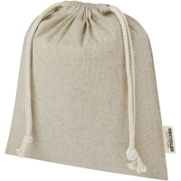 Torba upominkowa wykonana z bawełny z recyklingu z certyfikatem GRS z zamknięciem na sznurek bawełniany. Idealna do prezentów lub przechowywania przedmiotów. Wymiary: 25 x 30 cm.