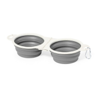 Podwójna miska dla psa z elementami ze słomy pszenicznej, składana, karabińczyk