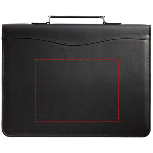 Portfolio zapinane na zamek z uchwytem, kółkami segregatora, zapinaną na zamek kieszonką i kieszeniami na dokumenty. W zestawie 20-kartkowy notatnik w linie. Nie zawiera długopisu i akcesoriów.