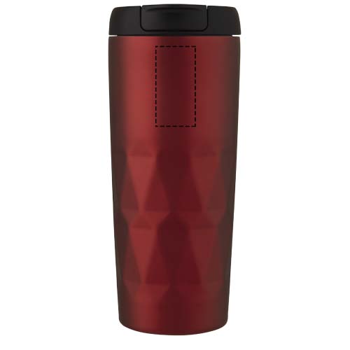 Dwuścienny, miedziany, izolowany próżniowo kubek z zakręcaną, szczelną pokrywką, ozdobiony misternym wzorem geometrycznym. Izolowana konstrukcja ze stali nierdzewnej 18/8 utrzymuje ciepło lub chłód napojów przez kilka godzin. Bez BPA, przetestowany i zatwierdzony zgodnie z niemiecką ustawą o bezpieczeństwie żywności (LFGB) oraz poddany testom na zawartość ftalanów zgodnie z przepisami REACH. Pojemność 450 ml. Zaleca się mycie ręczne. Zapakowany w kartonowe pudełko upominkowe wykonane z materiałów pochodzących z recyklingu.