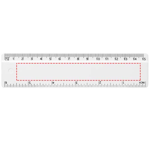 Solidna linijka z plastiku z recyklingu z oznaczeniami w calach i centymetrach.