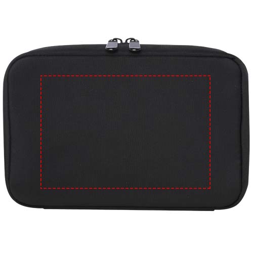 Etui z organizerem Rise to uniwersalne i hybrydowe rozwiązanie do uporządkowania wszystkich przedmiotów związanych z technologią. To etui z organizerem o twardej obudowie wykonane z wytrzymałego poliestru 900D z recyklingu z certyfikatem GRS i aksamitnej podszewki ma dwie kieszenie, kieszenie z siatki, elastyczne paski u dołu na kable i kieszeń zapinaną na suwak na dodatkowe akcesoria. Wszystkie kieszenie zapewniają optymalną organizację, a twarda obudowa chroni wszystkie cenne gadżety.