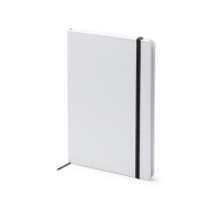 Notatnik w formacie A5 idealny do sublimacji w twardej okładce. Zawiera znacznik stron i pasującą elastyczną opaskę zamykającą. Zawiera 100 arkuszy zwykłego papieru.