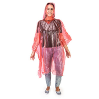 Przeźroczyste ponczo przeciwdeszczowe dla dorosłych w jednym rozmiarze z kapturem i wycięciem na ramiona.