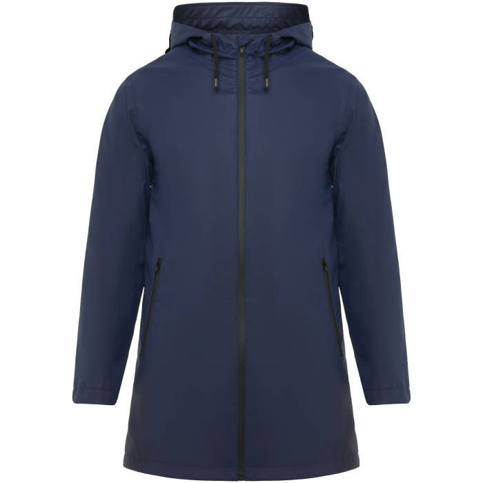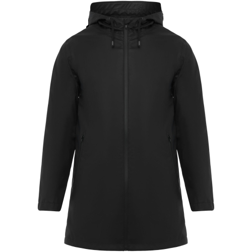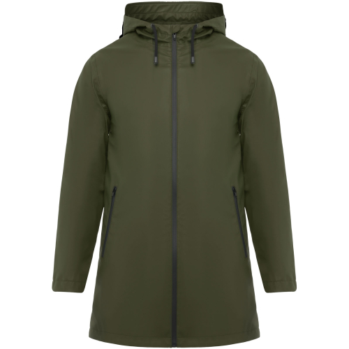 Wodoodporna kurtka przeciwdeszczowa. Kaptur z daszkiem. Zgrzewane zamki błyskawiczne i szwy. Kontrastowe detale w kolorze czarnym. Dwie kieszenie boczne z zamkiem błyskawicznym. Rozcięcie z tyłu. Usuwalna metka. Wodoodporna.