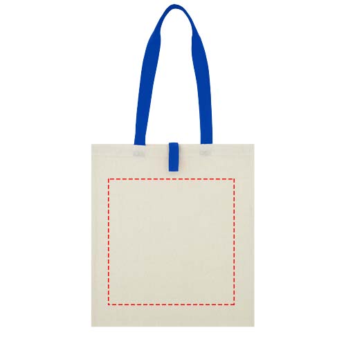 Torba na zakupy z otwartą przegrodą główną i kolorowymi uchwytami o wysokości 32 cm po rozwinięciu. Posiada pasek z zapięciem na guziki, aby ułatwić jej składanie. Wytrzymałość do 8 kg.