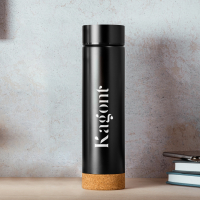 Butelka termosowa o podwójnych ściankach wykonana ze stali nierdzewnej 304 i z korkową podstawą.