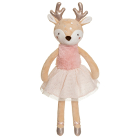 Baleriny Teddykompaniet to nasza niezwykle popularna rodzina baletnic. Teraz rodzina się powiększa i oto przedstawiamy nową Ballerinę – jeleń Ruth! Ma błyszczące, złote rogi zdobiące jej uroczą głowę. Ruth ma również tiulową spódnicę i futrzane wykończenia, tak jak jej przyjaciółki jednorożec Ella oraz króliczki Kate i Kelly.