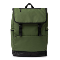 Plecak z klapką ze skóry PU. Duża komora wewnętrzna z kieszenią na laptopa o przekątnej 15 cali. Wyściełane uchwyty i plecy. Zewnętrzna kieszeń z przodu i boczne kieszenie.
