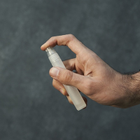 Praktyczne 10 ml. półprzezroczysty pojemnik w kształcie długopisu, z rozpylaczem.