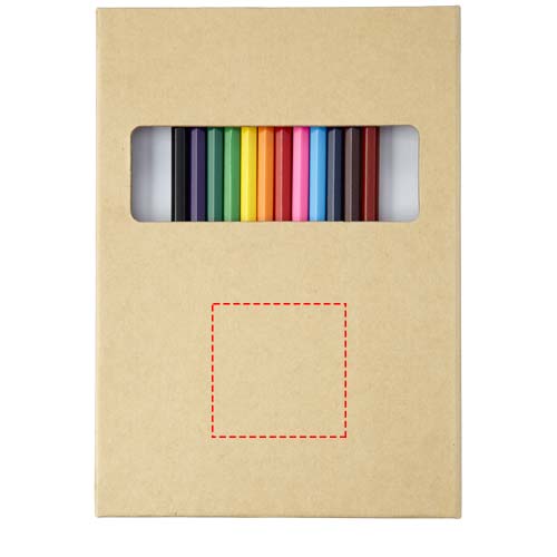 12 kolorowych kredek i 10-stronicowa kolorowanka oraz 40 pustych, białych kartek papieru. Zapakowany w papierowe, składane opakowanie. Dekoracja niedostępna na zawartości.